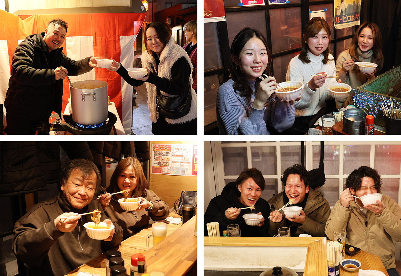 お鍋から立ち上る湯気で、屋台横丁全体があたたかな雰囲気に包まれました。